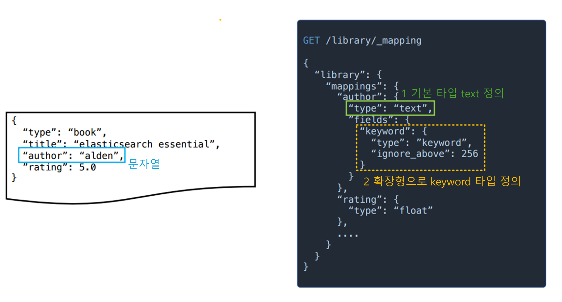 author라는 필드가 "alden"이라는 문자열 데이터를 가지고 동적 매핑을 진행하면