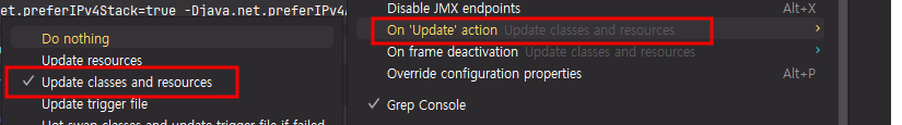 6. On 'Update' action 선택 -> Update classes and resources 선택